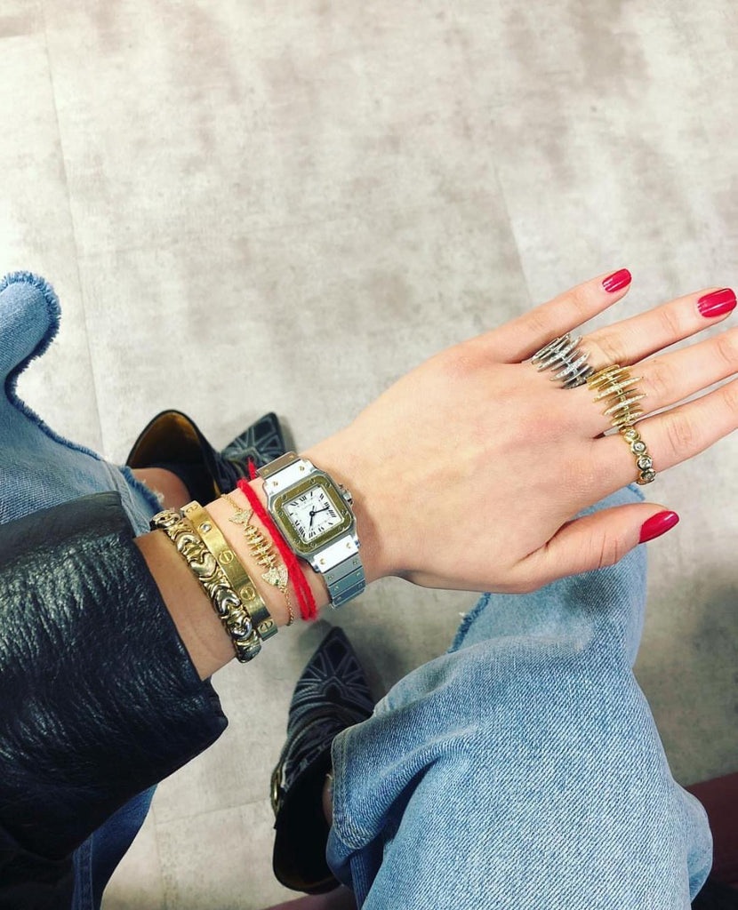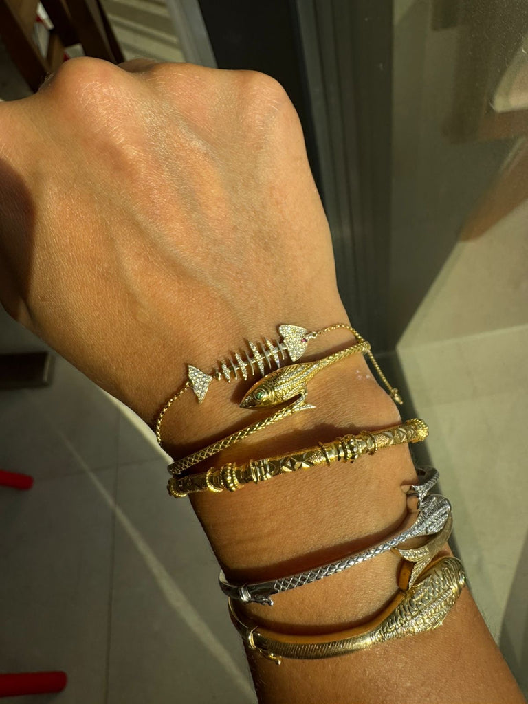 Our classic Wishbone bracelet part of our classic wishbone collection is handcrafted from 18k gold, featuring precious stone eye, and diamonds